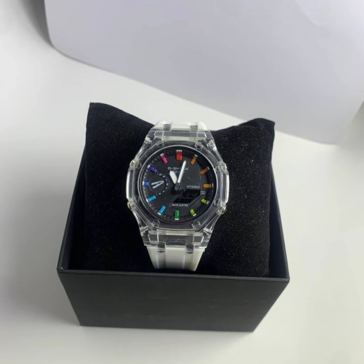 جی-شاک GA-2100SKE با طراحی شفاف بدنه و بند، ترکیبی منحصربهفرد از استایل مدرن و مقاومت بینظیر است. این ساعت ضد ضربه و ضد آب تا 200 متر، با ویژگیهایی نظیر نور LED، ساعت جهانی، کرونومتر، تایمر و آلارم، یک انتخاب عالی برای کسانی است که به دنبال ساعتی متفاوت و بادوام هستند. طراحی اسکلتون آن، جذابیت بصری خاصی به آن بخشیده است. همین حالا این استایل شفاف و مقاوم را تجربه کنید!