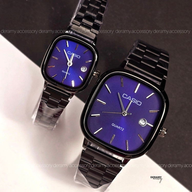 ساعت کاسیو الدمانی بندمشکی - ست الدمانی بند مشکی صفحه آبی