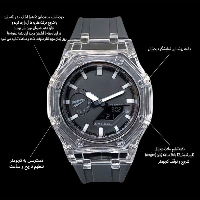 ساعت مچی عقربهای کوارتز مدل دو زمانه کرنومتر دار موتور پمپی کد GA-2100GR.Y