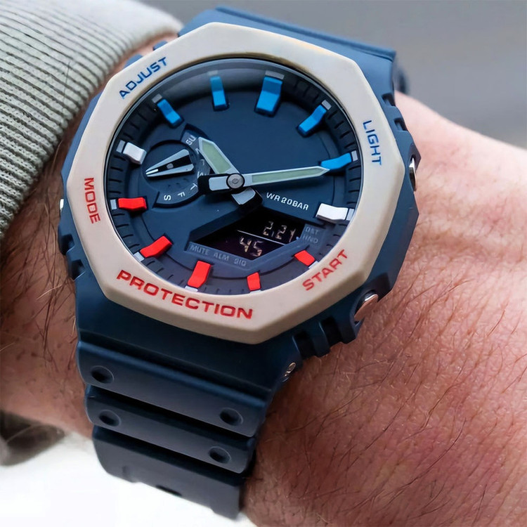 نمایش 24 ساعته , نمایش ساعت دوم , نور پس زمینه , تاریخ شمار , آلارم , کرنوگراف , عقربههای شبتاب , صفحه طرحدار