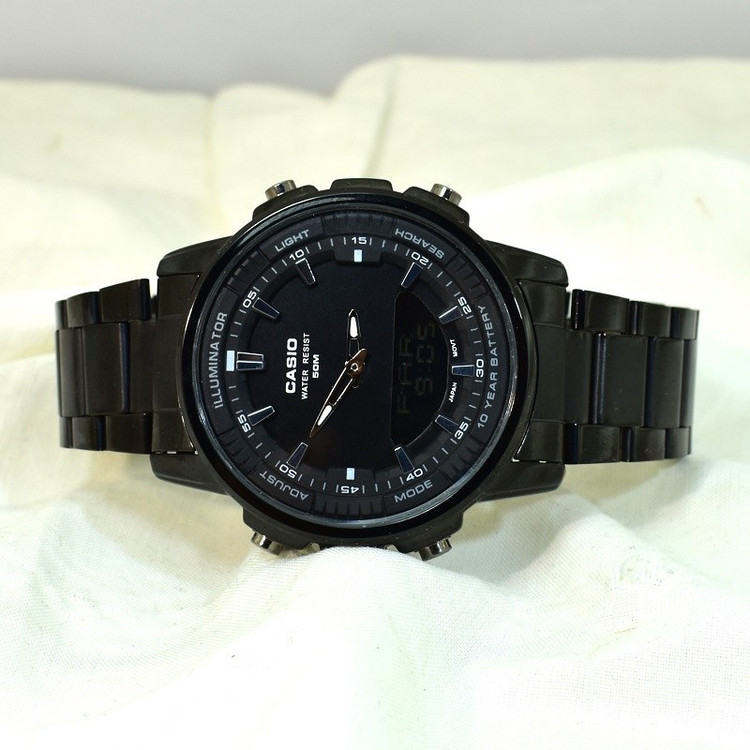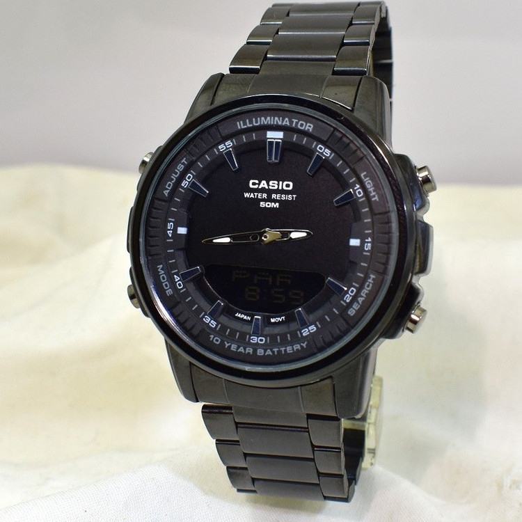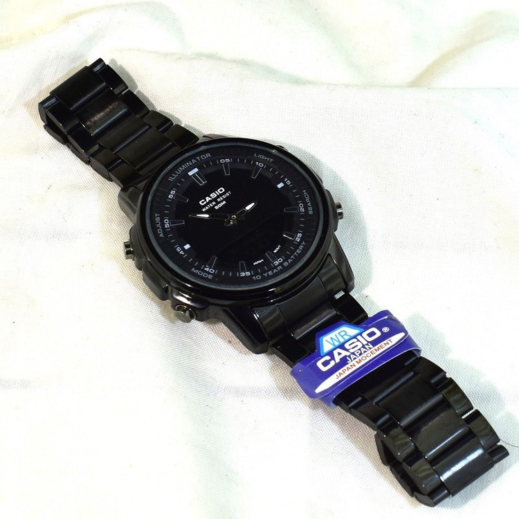 کاسیو هیدرولیک اتولایت CASIO WORLD TIME AMW – دو زمانه با چراغ لایت لامپی بسیار قوی