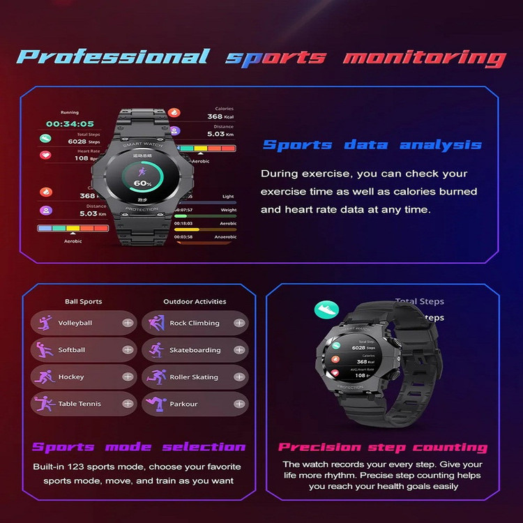 صفحه نمایش رنگی , صفحه نمایش لمسی , کنترل موسیقی (Music Player) , کنترل سطح اکسیژن خون , قابلیت مکالمه از طریق بلوتوث , قابلیت تغییر طرح ساعت یا تم , ضد آب