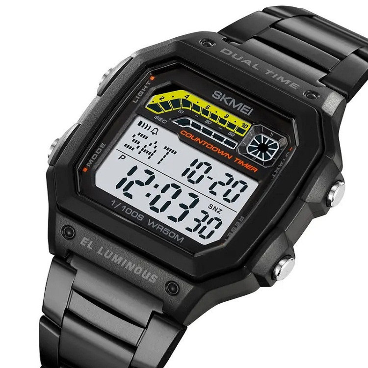 تایمر , صفحه طرحدار , نمایش 24 ساعته , نمایش ساعت دوم , نور پس زمینه , تاریخ شمار , آلارم , کرنوگراف , ضد آب