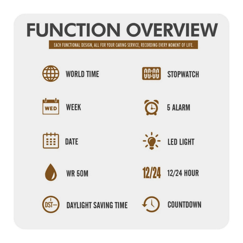 نمایش 24 ساعته , نمایش ساعت دوم , عقربههای شبتاب , تاریخ شمار , آلارم , شیشه ضدخش , کرنوگراف , ضد آب