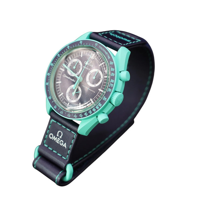 این ساعت فول پک حاصل همکاری دو شرکت بزرگ ساعتسازی در جهان به نامهای امگا و سواچ است که با همفکری یکدیگر توانستهاند سری ساعتهای ماموریت به سوی سیارات منظومه شمسی را طراحی و به بازار جهانی عرضه کنند. یکی از مدلهای جذاب و زیبا این سری ساعت امگاسواچ ماموریت به سوی زهره است که با رنگ سرمه ایی جذابی که دارد همه را مجذوب خودش کرده است. شما با خرید ساعت امگاسواچ مدل ماموریت به سوی زهره، یک ساعت با بدنهای از جنس بایوسرامیک را خواهید داشت که به قاب ساعت استحکام و مقاومت زیادی را در برابر ضربه و خطوخش بخشیده است. موتوری که با خرید ساعت امگاسواچ مدل ماموریت به سوی زهره برروی این ساعت زیبا قرار گرفته است، 3 موتور کرنوگراف باتری خور سوئیسی است که از کیفیت ساخت زیادی برخوردار است و به ساعت یک دقت بالا را در نمایش زمان میدهد. بند این ساعت نیز از جنس برزنت میباشد که به صورت چسبی برروی دست شما بسته خواهد شد و به شما یک راحتی فوقالعاده را در هنگام استفاده از آن خواهد داد.