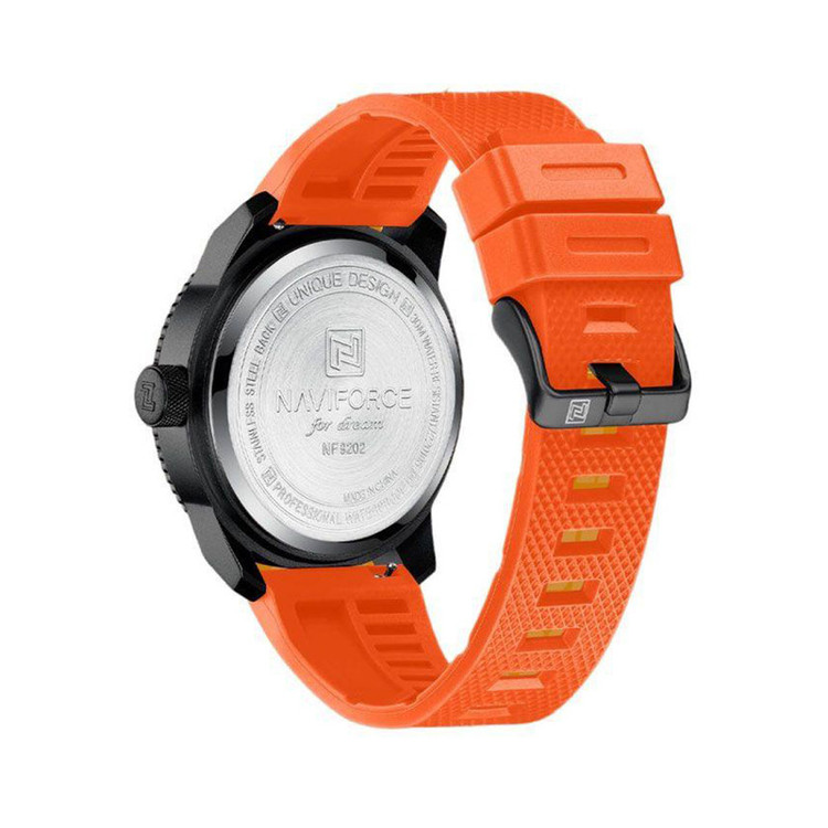 ساعت مچی عقربه ای مردانه نیوی فورس مدل NF9202 دارای موتور قدرتمند کوارتز است این نوع محصول نیروی مورد نیاز خود را از طریق یک باتری تامین میکند.این ساعت دارای جنس بدنه با استیل ضخیم به رنگ مشکی است و شیشه این ساعت معدنی تقویت شده و مقاوم در برابر خراش است.قفل ساعت مدل پینی است..حک برند NAVIFORCE بر روی صفحه،قفل،سرکوک و درب ساعت. این ساعت عقربهای مردانه دارای ظاهری شیک و جذاب بوده و برای استفاده در هر شرایطی کاملا مناسب خواهد بود.