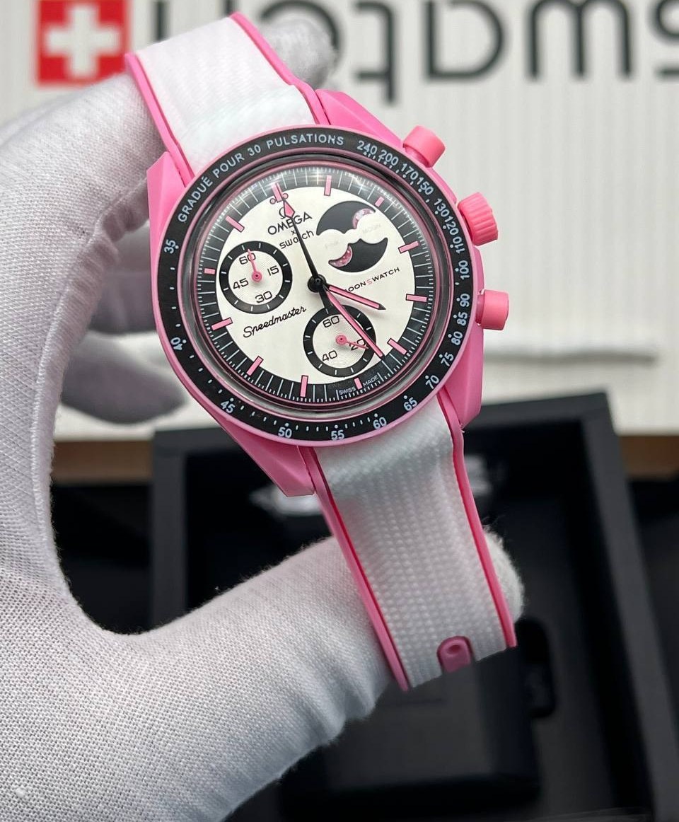 ساعت امگاسواچ ماه صورتی مشکی اسنوپی رابر(2025)