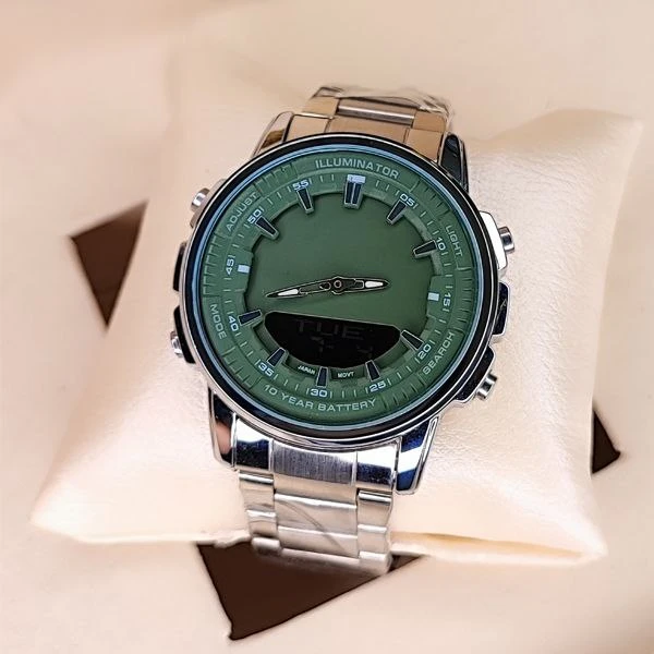ساعت مچی عقربه‌ای کوارتز مردانه مدل پمپی دوزمانه کد 02