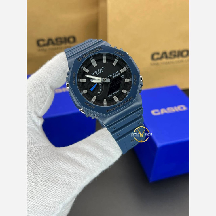 ساعت مچی کاسیو جیشاک صفحه مشکی بدنه و بند سرمه ای .