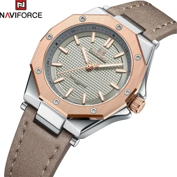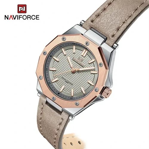 ساعت مچی زنانه نیوی فورس مدل NF5026RGGYGY با بند چرم