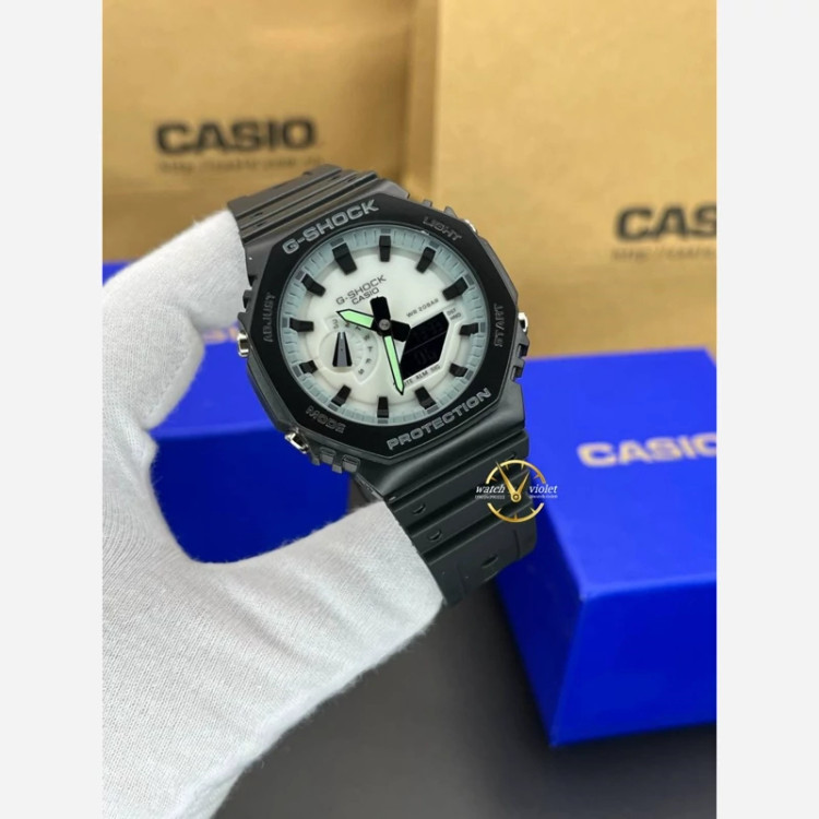 ساعت مچی جیشاک کاسیو صفحه سفید بند مشکی ایندکس مشکی