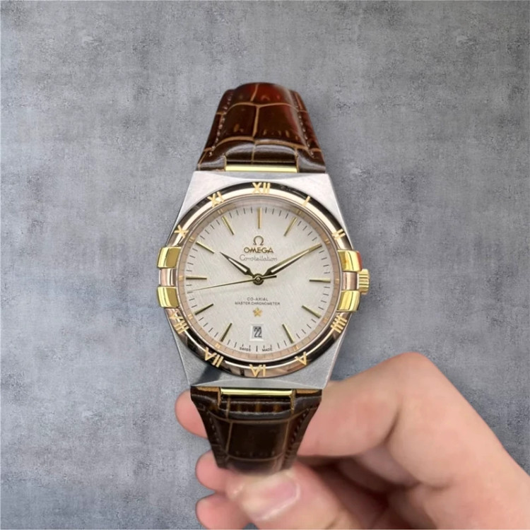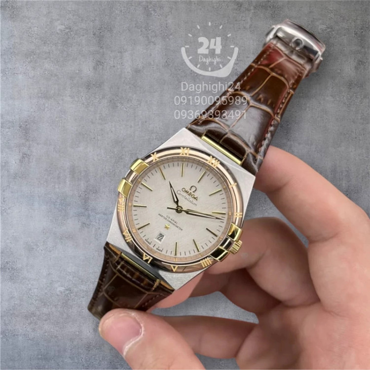 ساعت مچی امگا کانسلیشن موتور اتوماتیک بند چرم مردانه رنگ قهوه ای