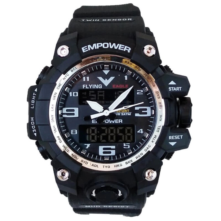 ساعت اسپرت مچی مردانه دو زمانه عقربه ای و دیجیتال امپاور EMPOWER مشکی ضدآبSPORT شیک خاص ساعت حراجی آنلاین