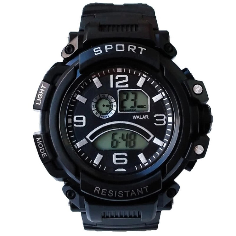ارسال رایگان WALAR ساعت مشکی اسپرت ضد ضربه چراغ دار کرنومتر والار Sport ضدآب کادوی تولد هدیه خاص فروش عمده