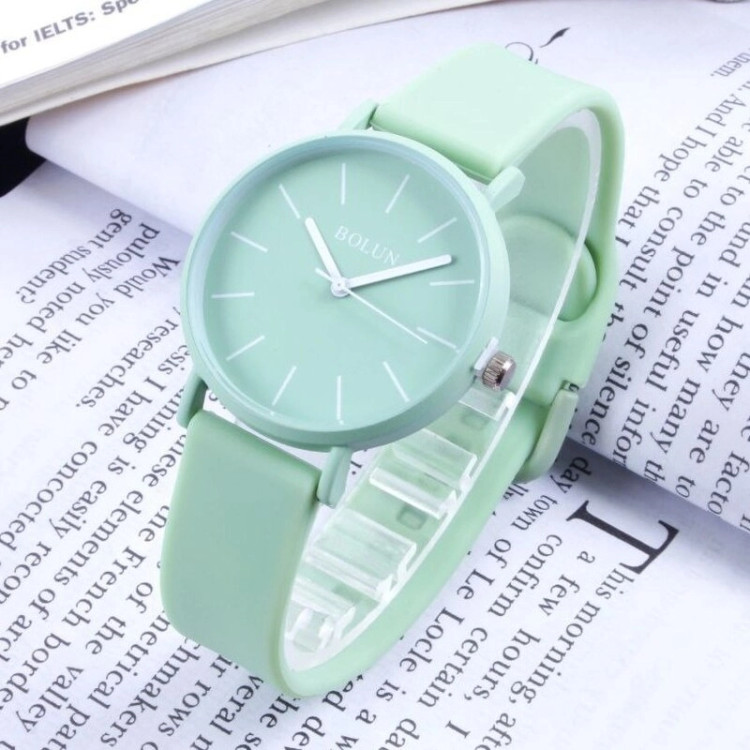 ساعت مچی زنانه و دخترانه بلون BOLUN گرد بند سیلیکونی پاستیلی سبز کمرنگ کد 2604